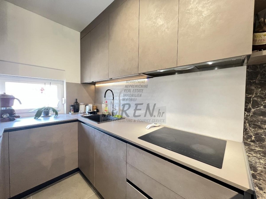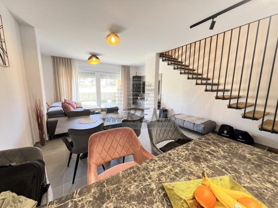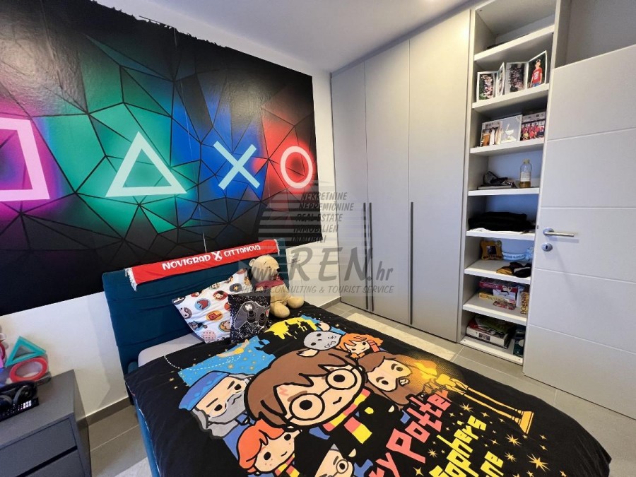 Zum Verkauf steht eine attraktive Wohnung auf 3 Etagen in Novigrad. Die Wohnung befindet sich in ruhiger Lage und ist 1700 m vom Stadtzentrum und 1300 m vom Meer und einem wunderschön angelegten Strand entfernt. Die Wohnung hat 129 m2 und besteht aus Erdgeschoss, 1. Stock und 2. Stock. Im Erdgeschoss gibt es eine Eingangshalle, eine Toilette und einen offenen Raum, in dem sich eine Küche mit Esszimmer und ein Wohnzimmer mit Ausgang zum Garten befinden. Im 1. Stock befinden sich 2 Schlafzimmer, eines davon mit Zugang zu einem Balkon, ein Badezimmer und ein weiteres Zimmer. Im 2. Stock gibt es ein großes Schlafzimmer mit Bad, einen Abstellraum und eine Dachterrasse mit wunderschönem Blick auf das Meer. Die Wohnung kann zu Wohn- oder Touristenzwecken genutzt werden. Zur Wohnung gehören 2 Parkplätze. Die Wohnung wird komplett möbliert verkauft.